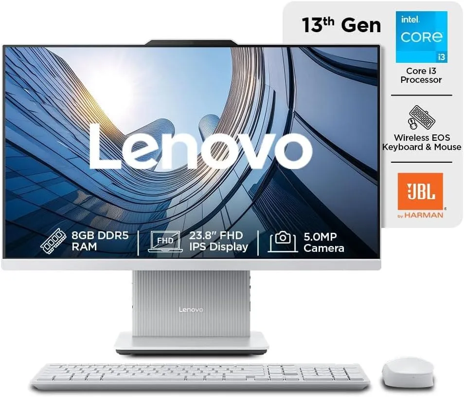 Lenovo IdeaCentre AIO 24IRH9 All-in-One Desktop, 23.8" FHD IPS 100Hz Display, Intel Core i3-1315U, 8GB DDR5 RAM, 512GB SSD, Wireless Keyboard & Mouse, Microsoft 365 Basic +...